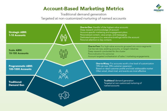 - Agrupando contas similares (muitas vezes por clusters / indústria, clientes de concorrentes ou outros segmentos), você pode planejar um calendário para aumentar seu foco em um ou alguns segmentos de cada vez. Isto também irá simplificar dramaticamente a campanhas e a criação de mensagens.